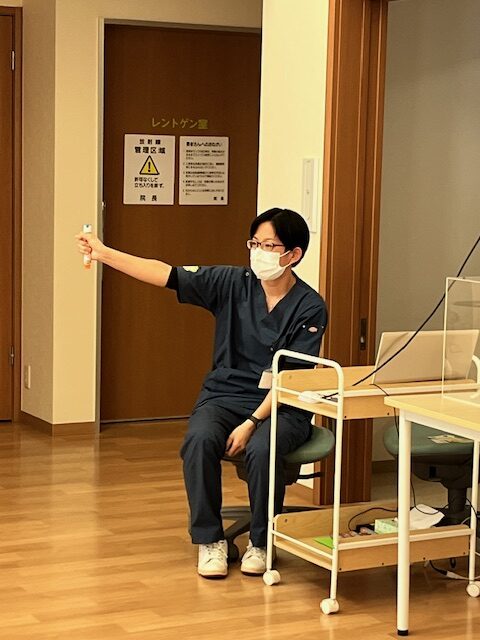 参加された皆さんにも実際にテスト用のエピペンを持って頂き、安全で確実な打ち方を練習しました。